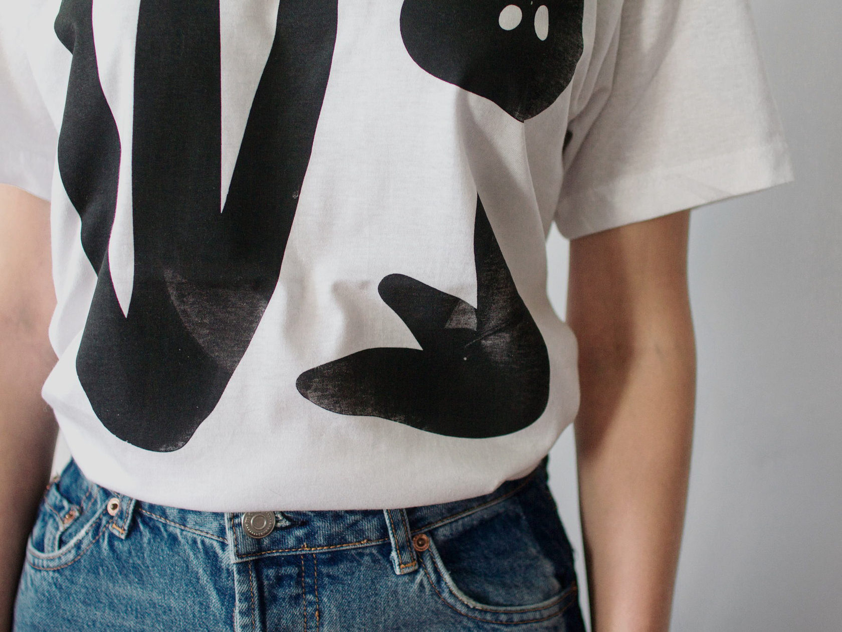 Как-то я увидела процесс шелкографии — зрелище буквально ввело меня в состояние транса, и я решила попробовать. Начала с футболок. Это примерно как носить картину на себе, не статично держать взаперти в квартире, а выгуливать.