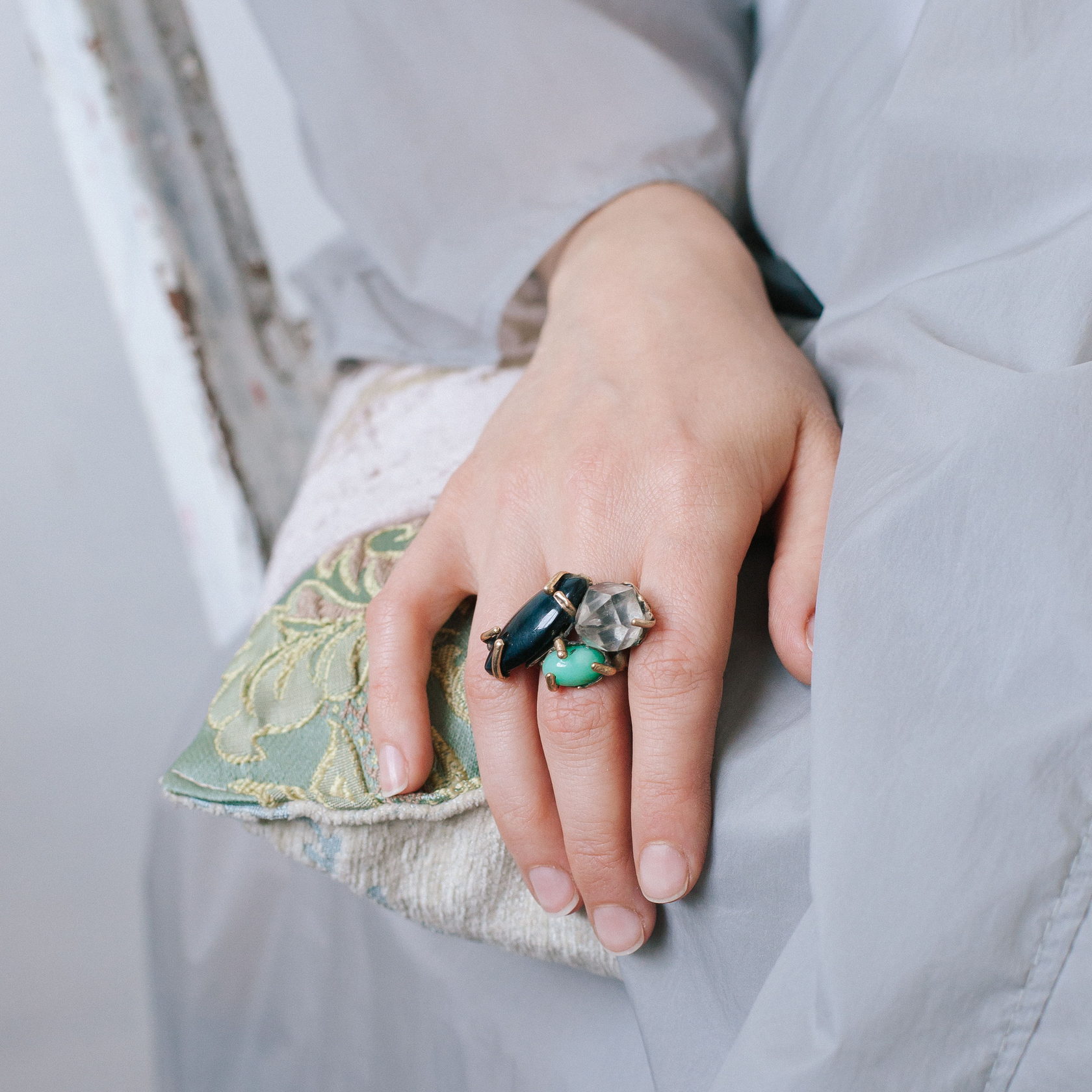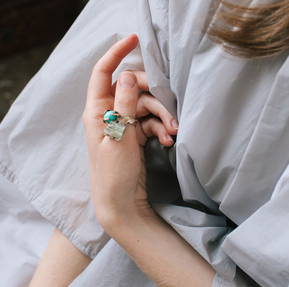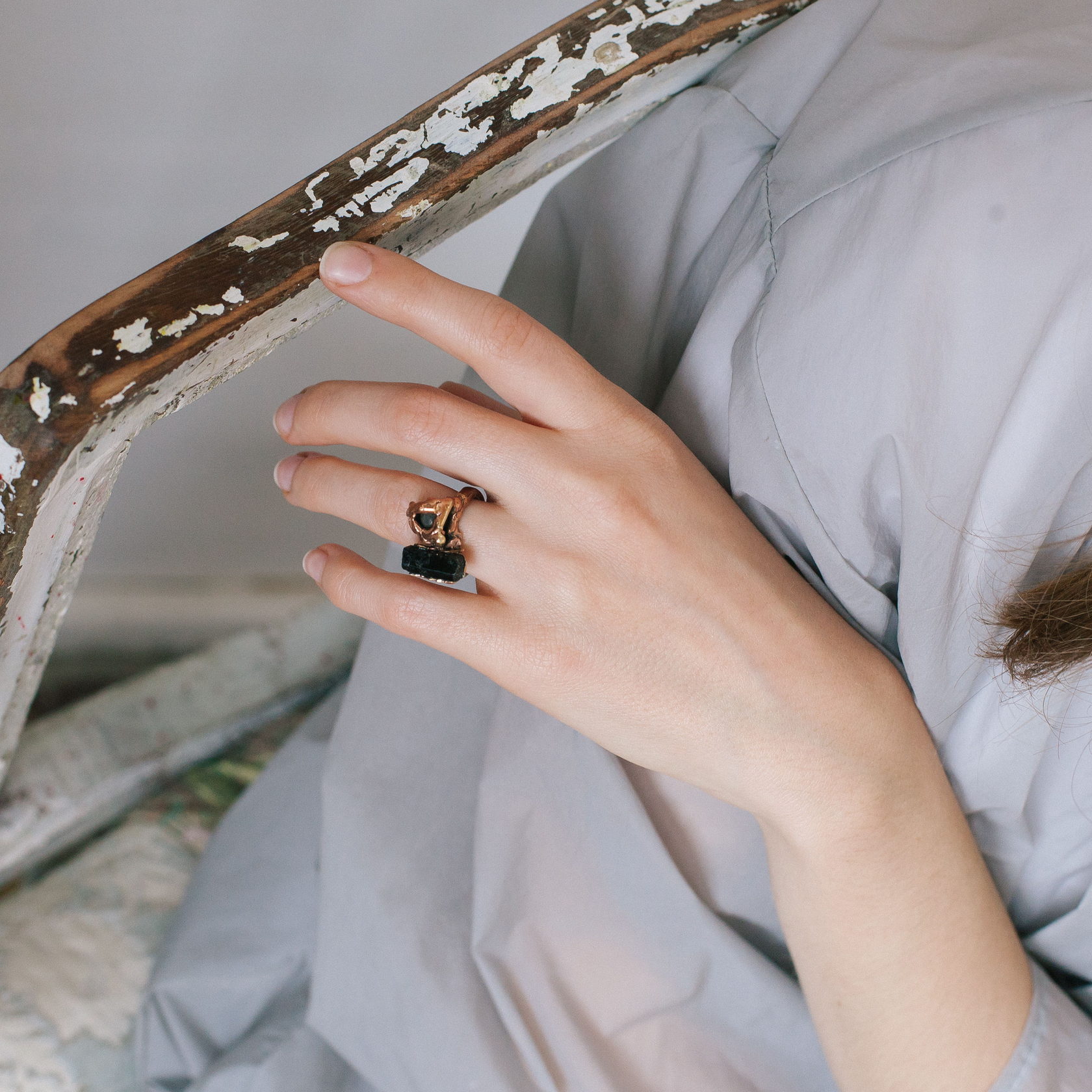 Аня: MW не могу назвать хорошей парной работой. У нас есть некое распределение дел, но многое размыто. Я отвечаю за съёмки, наш образ в соцсетях, маркетинг и нетворкинг. Украшения почти не делаю, только если какие-то крупные заказы, где нужно всё чётко нарисовать и донести до заказчика. Саша делает главное — любимые всеми кольца-минералы, там как раз его непосредственность и энергия круто работают. Всякими важнейшими делами типа документации, бухгалтерии, развития, мы толком не занимаемся, поэтому до сих пор находимся в глубоком андеграунде. Хотя полтора года назад у нас появился
